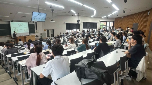 2025年6月11日5限に実施された「交渉紛争解決の法と政策」の講義に、こうのとりのゆりかご出身であることを公表されている大学生の宮津航一さん(一般社団法人子ども大学くまもと理事長)を、法学部研究教育振興会の特別授業の講師としてお招きし、「こうのとりのゆりかごから始まる第2の人生―出自を知る権利、その告知を中心に考える」というテーマでお話をしていただきました。