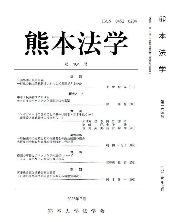 (インデックスツリー > 掲載誌一覧 > 熊本法学より閲覧できます。)