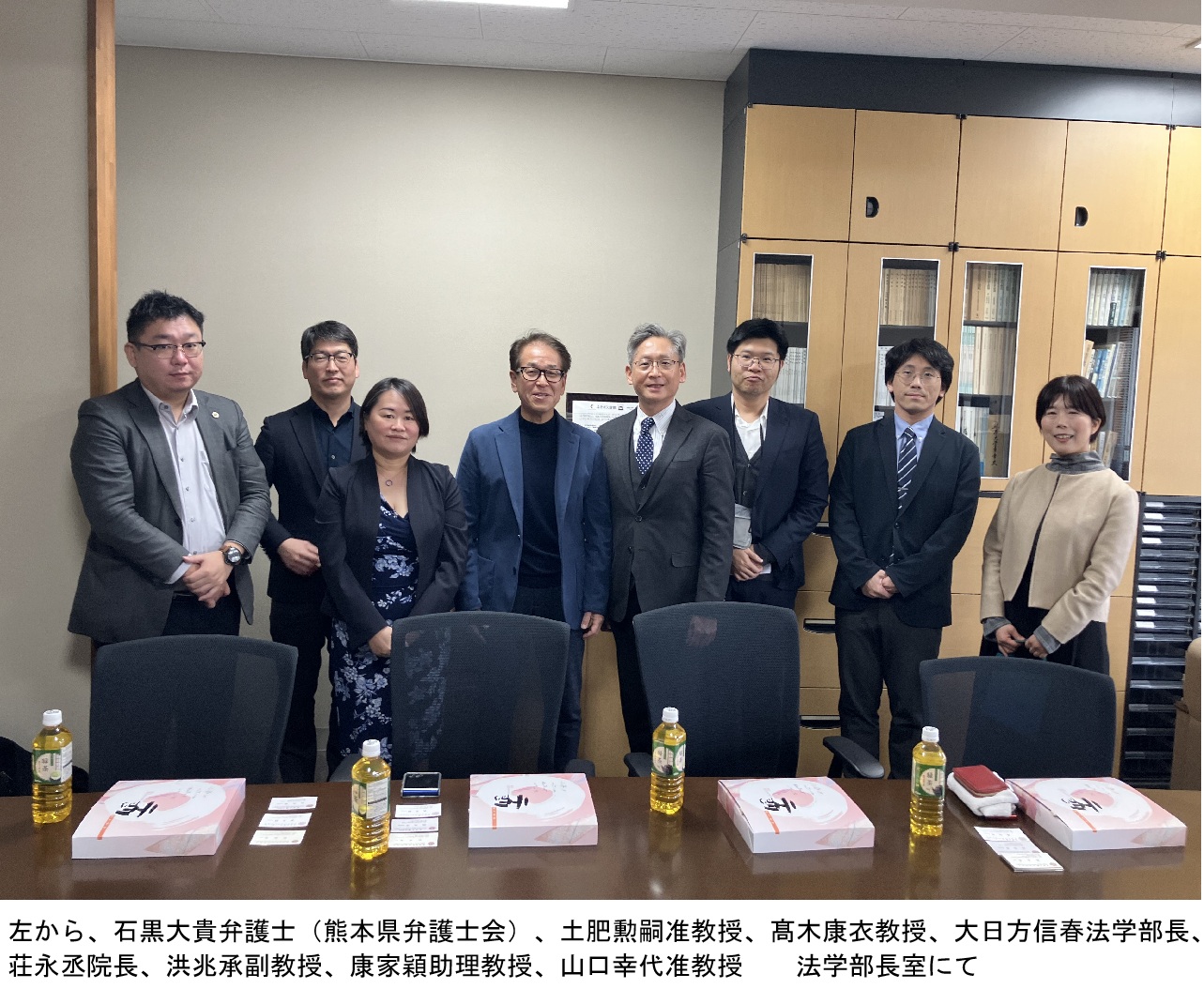 2026年1月29日、東呉大学法学院(台湾)の荘永丞院長、洪兆承副教授、康家穎助理教授の3名が、熊本大学法学部を表敬訪問されました。東呉大学は熊本大学法学部と部局間交流協定を締結しており、さらに熊本へのTSMC進出を契機として、台北律師公會(台北弁護士会)と熊本県弁護士会との間でも友好協定が締結されています。今回の意見交換会では、こうした法実務との連携も視野に入れつつ、今後の両校における研究交流および教育交流の一層の充実に向けて、活発な意見交換が行われました。